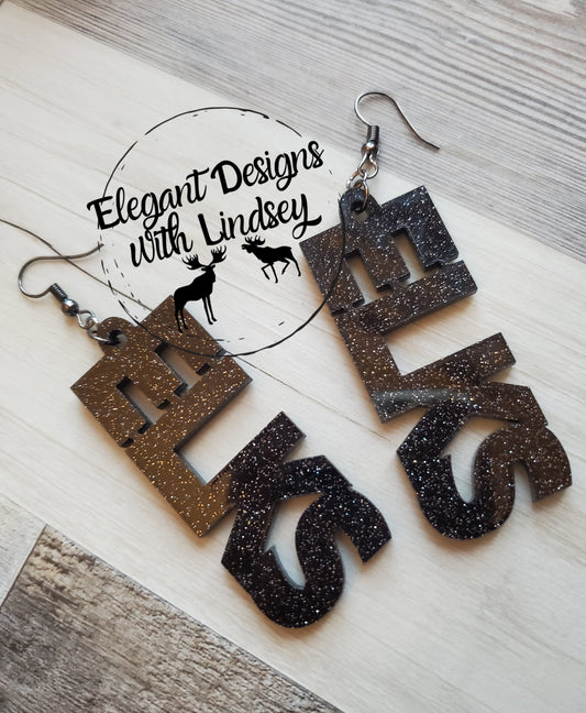 Black/Silver Glitter ELKS Acrylic Earrings