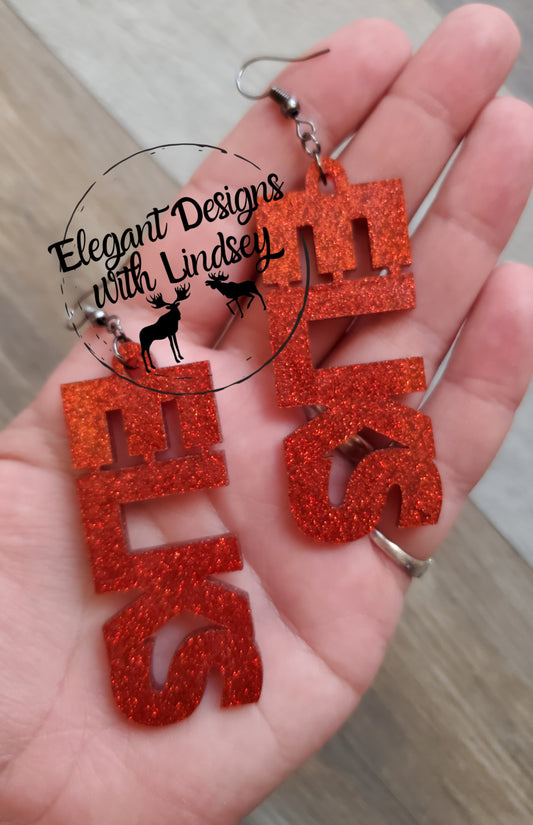 Red/Red Glitter ELKS Acrylic Earrings