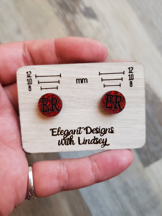 Red Glitter ER Acrylic Stud Earrings