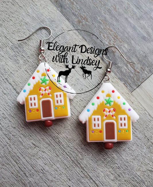 Gingerbread House Silicone Bead Earrings
