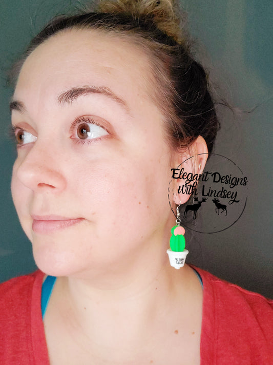 Succulent Plant & Pot Silicone Bead Earrings