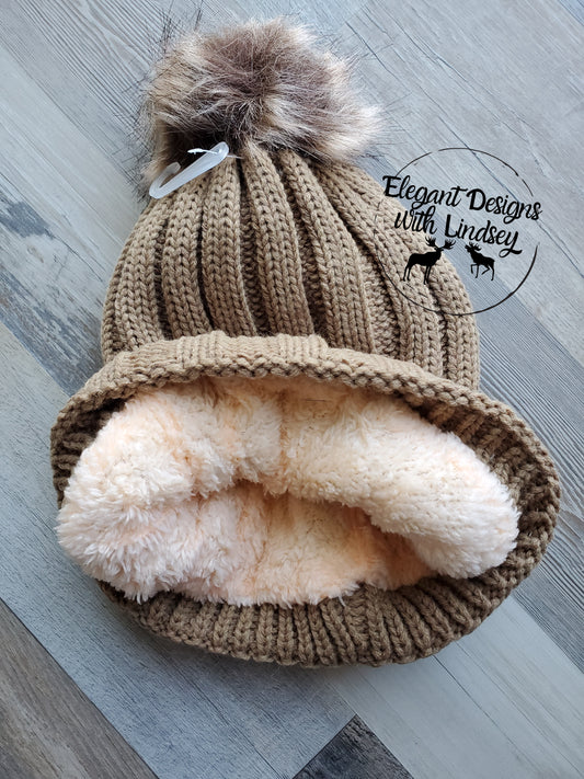 Tan winters hat with pom