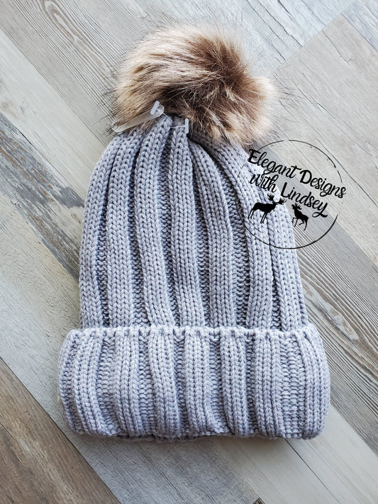 Gray winters hat with pom