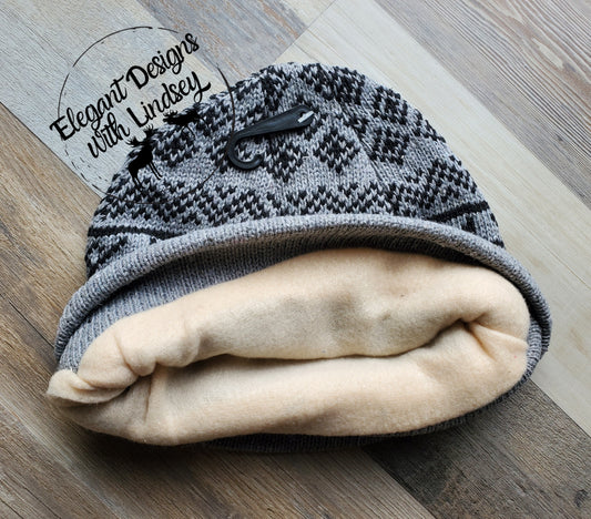 Men's Gray fleece lined beanie hat