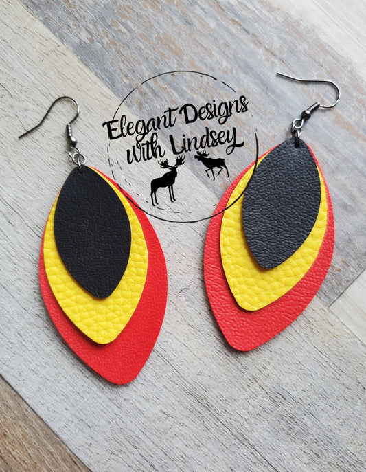 Red/Yellow/Black 3 Layer Faux Leather Earrings