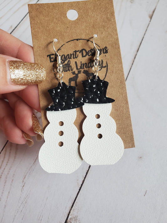 Snowman faux leather earrings