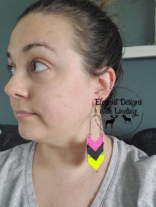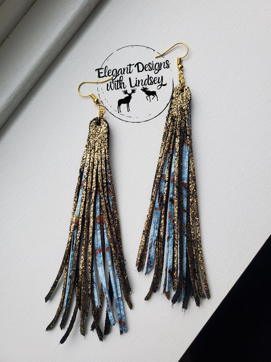 Chameleon Glitter Funky Feather Cut Genuine Leather Earrings