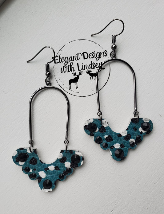 Arch teal cheetah jeweled Genuine Leather Earrings