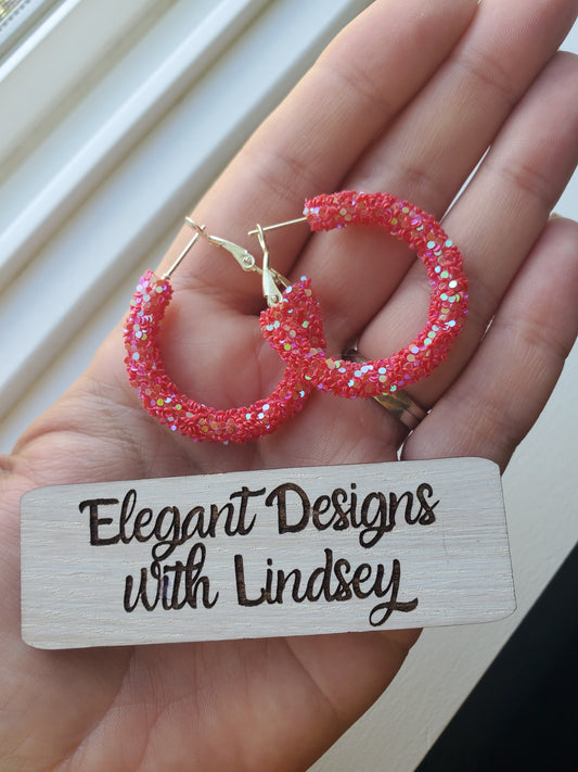 Hot Pink Glitter Hoop earrings