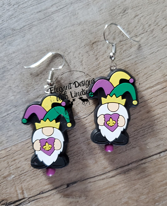 Mardi Gras Gnome Silicone Bead Earrings
