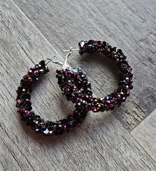 Purple Rain Super Chunky Rhinestone Hoop Earrings