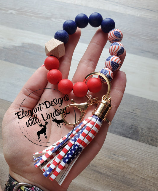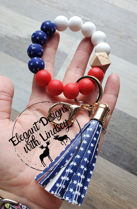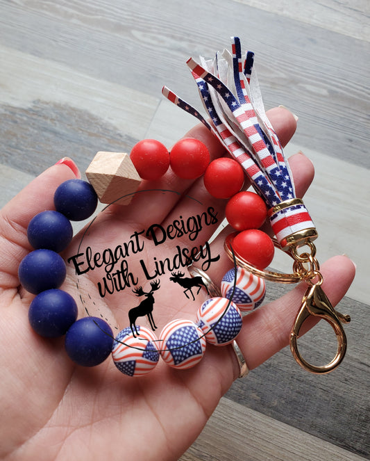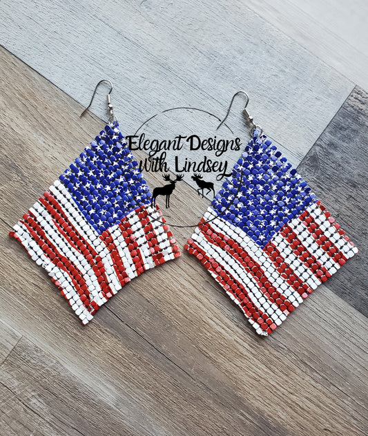 American Flag Painted Stars Wood/Resin Stud Earrings
