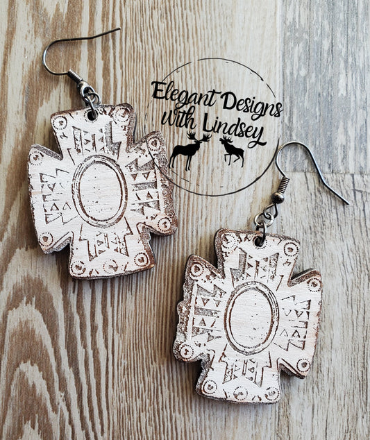 Western Cross Hand Painted Wood Earrings
