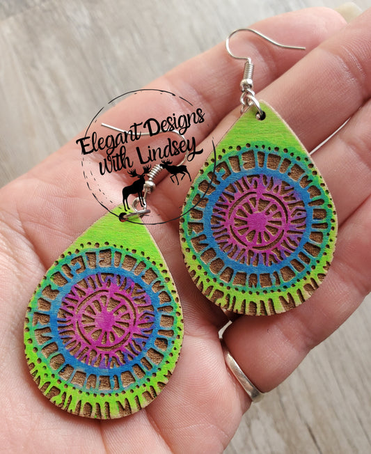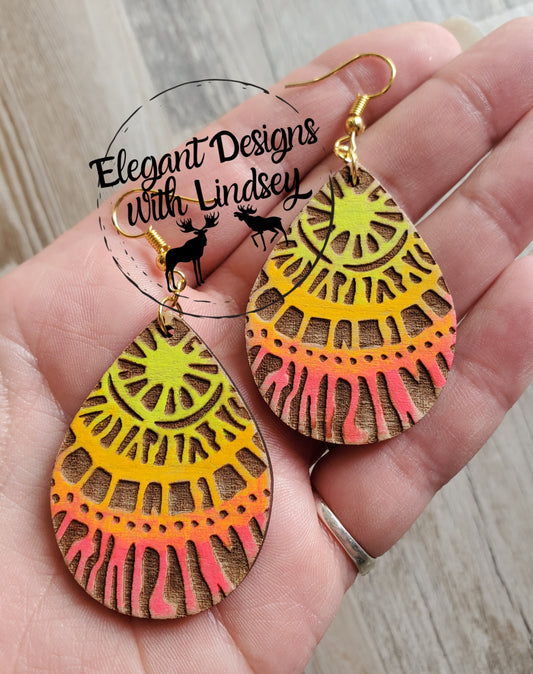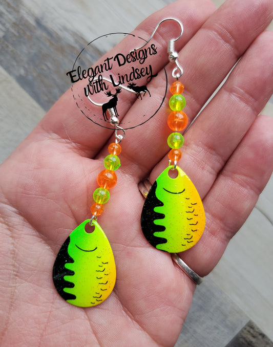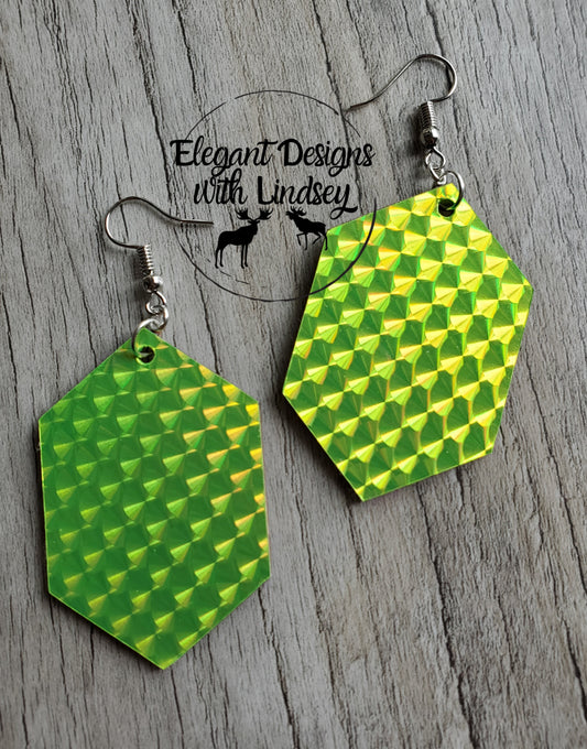Amber Green/Gold Glitter Skirt Fringe Earrings