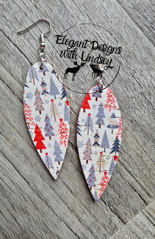 Christmas Tree Dangle Cork Genuine Leather Backed Earrings
