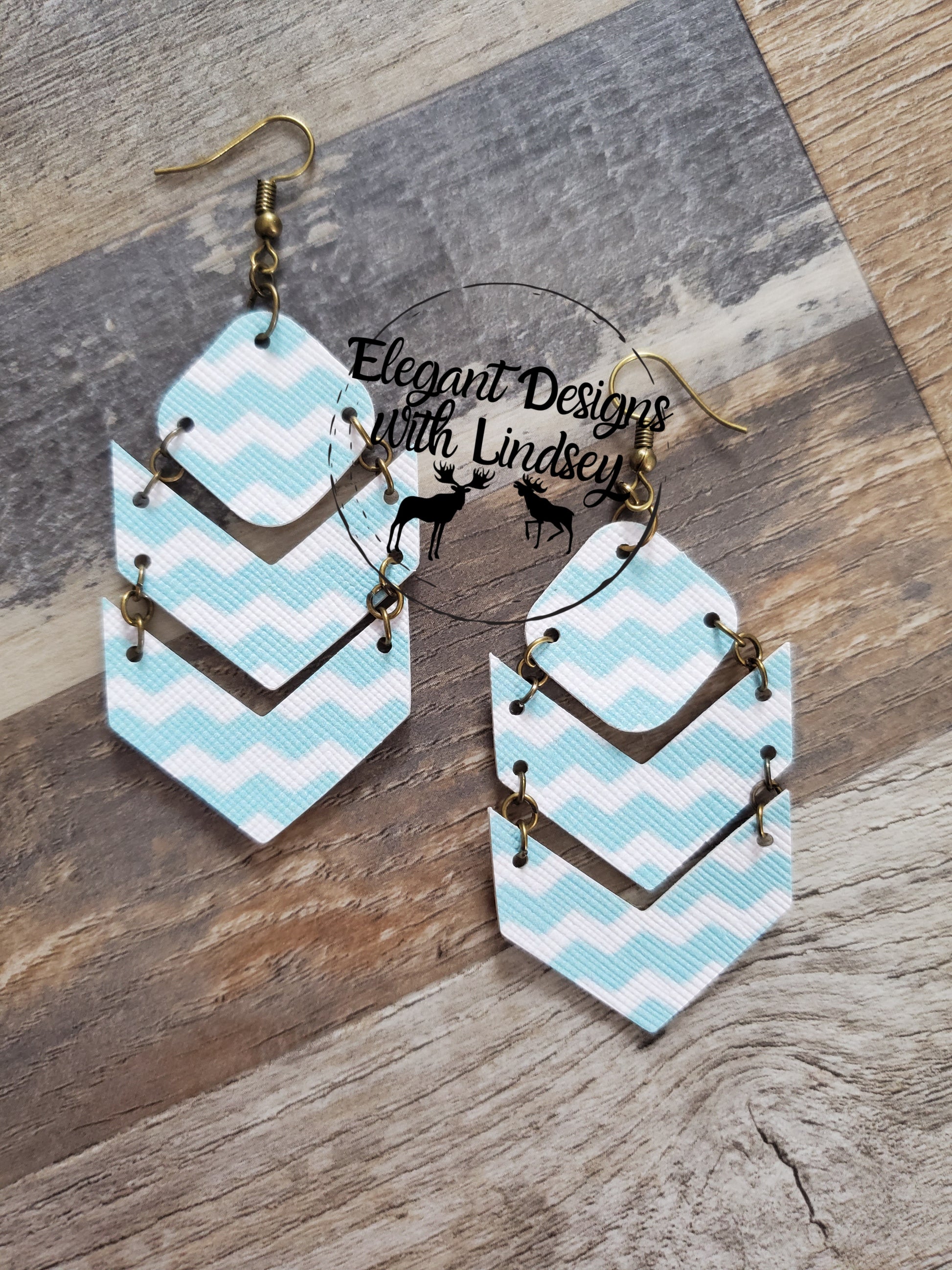 Blue Stripe Chevron Arrow Faux leather Earrings