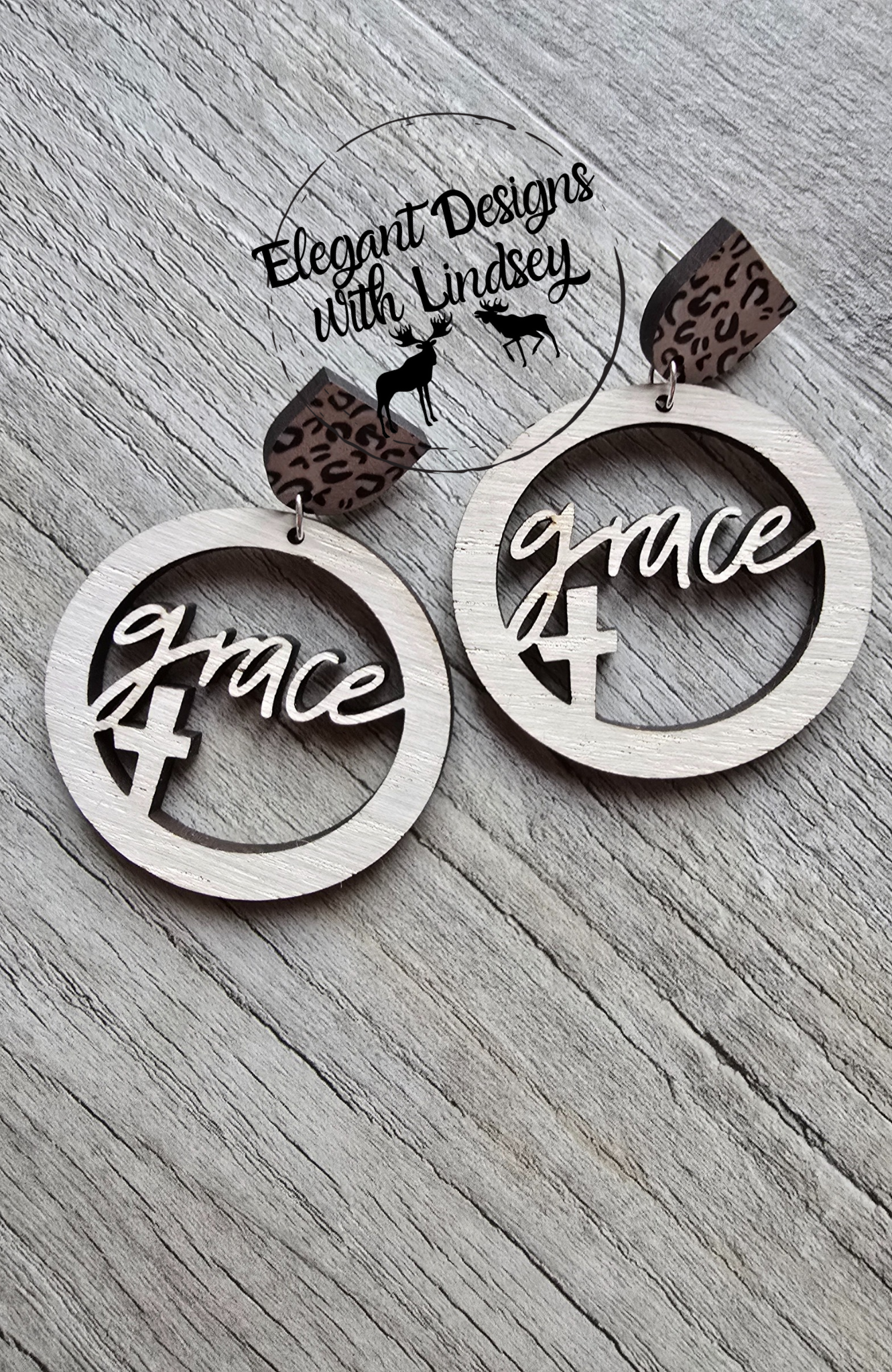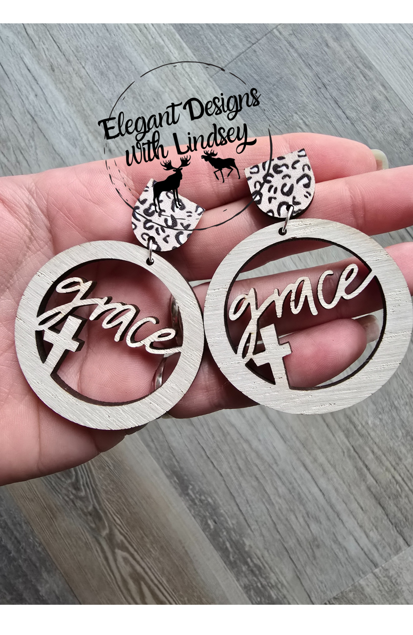 Grace Round w/Cross Wood post dangle earrings are an adorable option for those of faith.