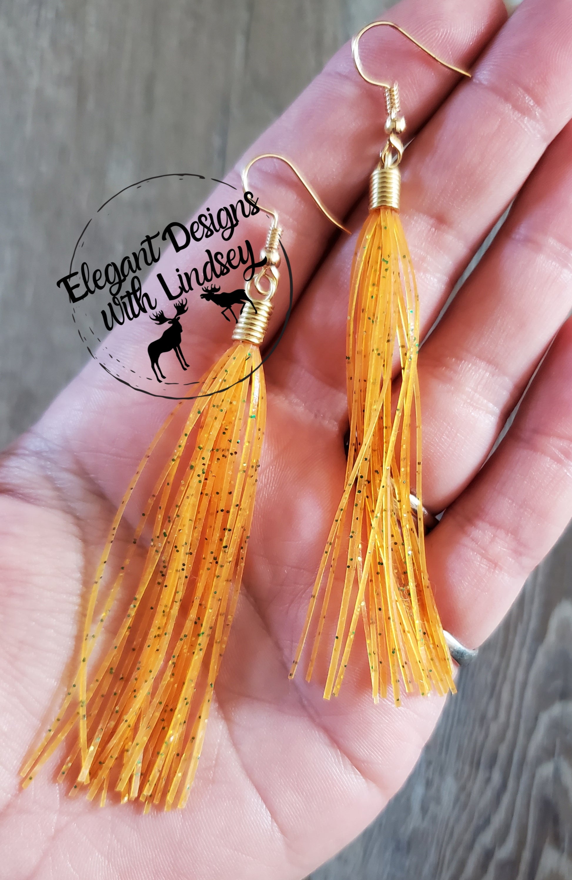 These Amber Green/Gold Glitter Skirt Fringe Earrings make for a stylish addition to your collection.