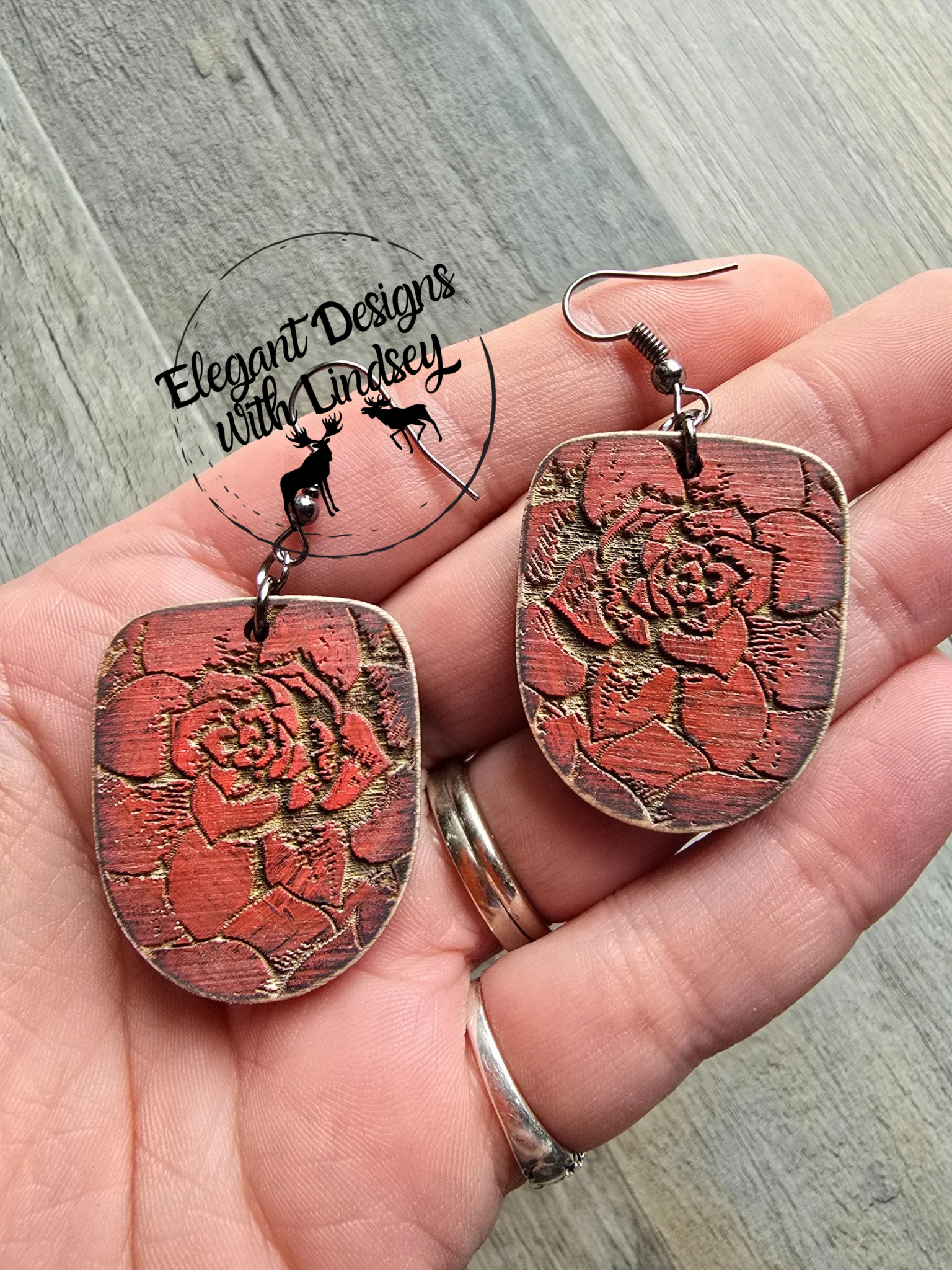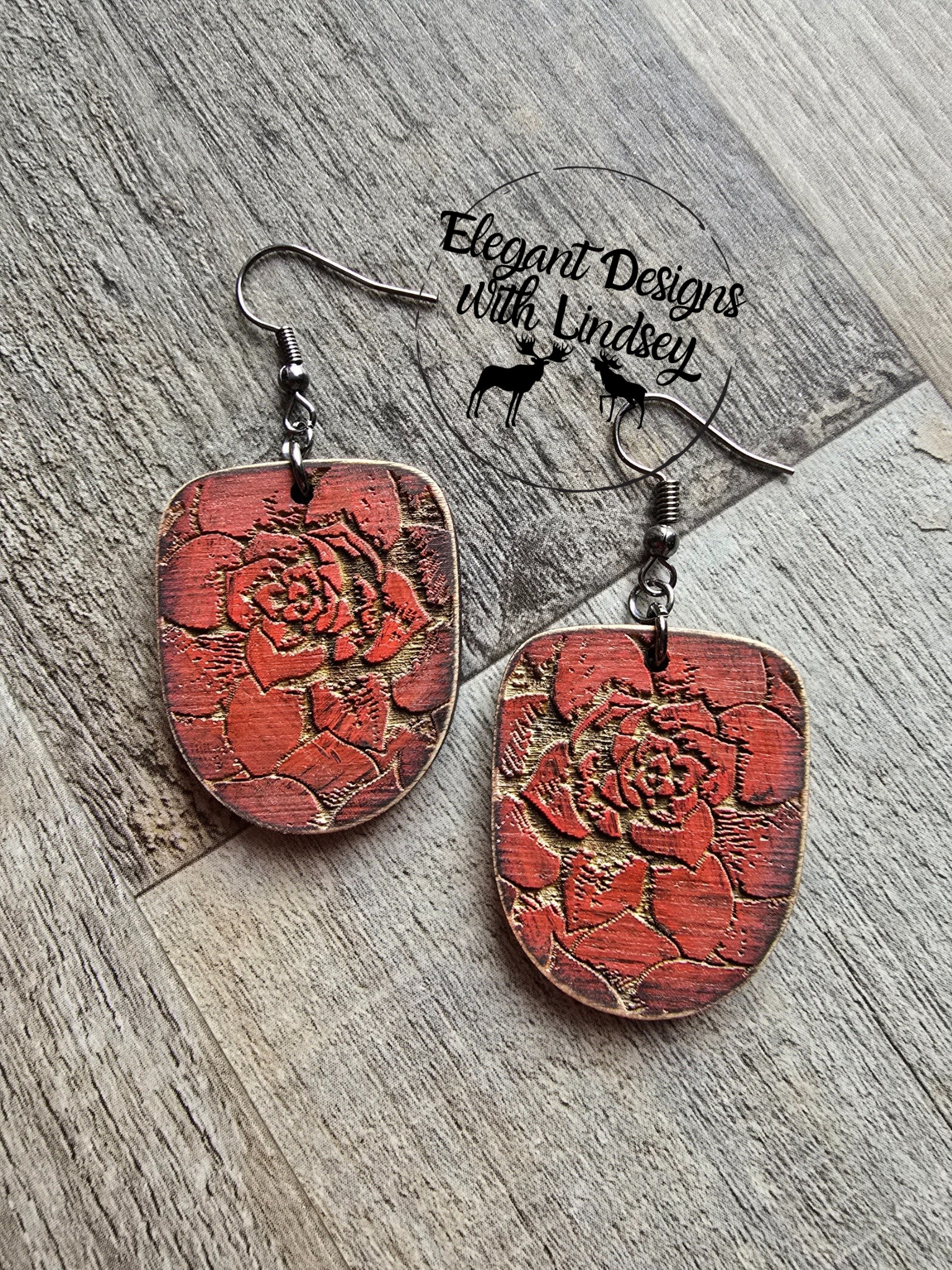 Experience the beauty of Red Roses with these Black Wood finish Earrings.