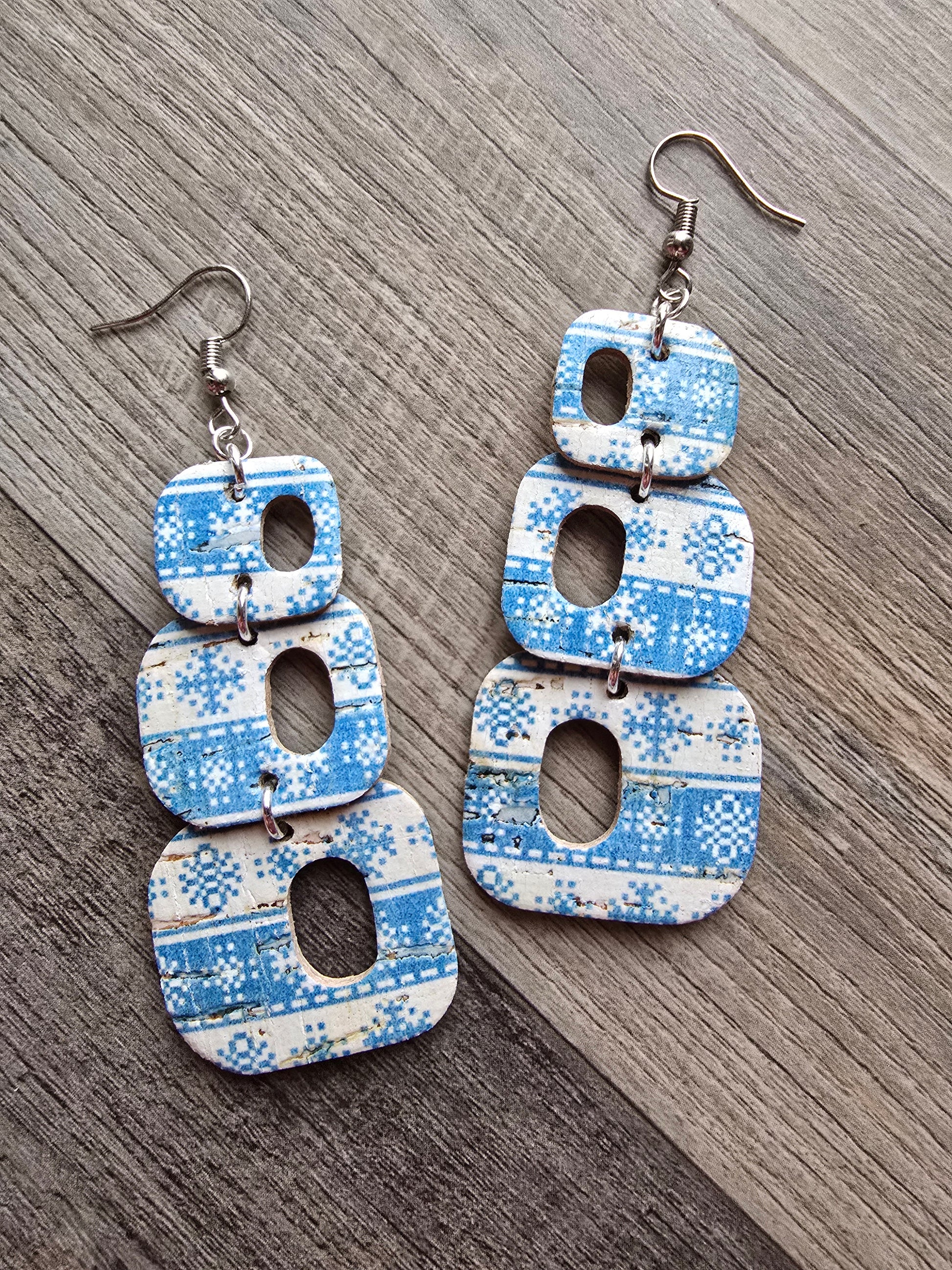 Retro Geometric Dangle Cork Backed Genuine Leather Earrings Snow Flakes